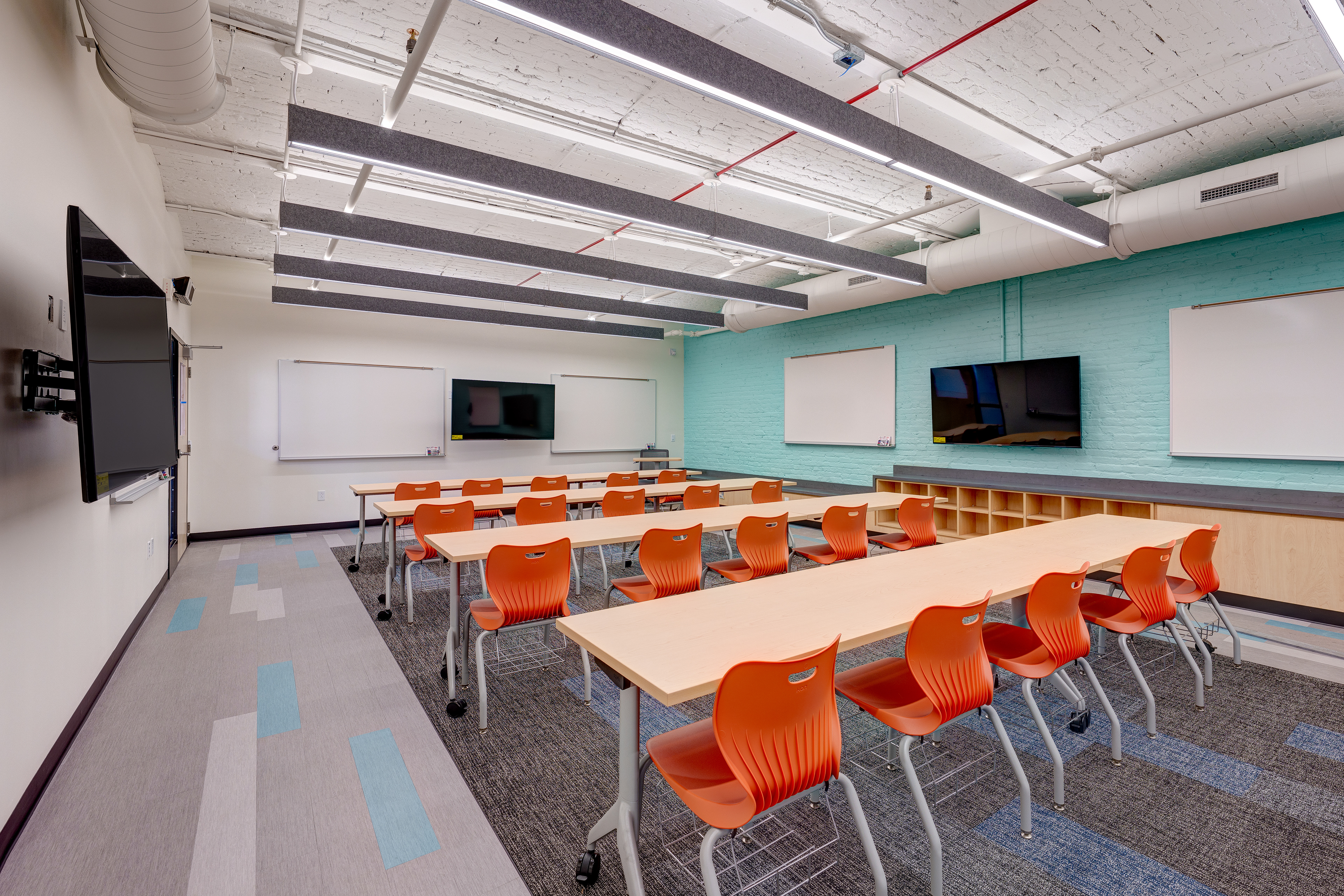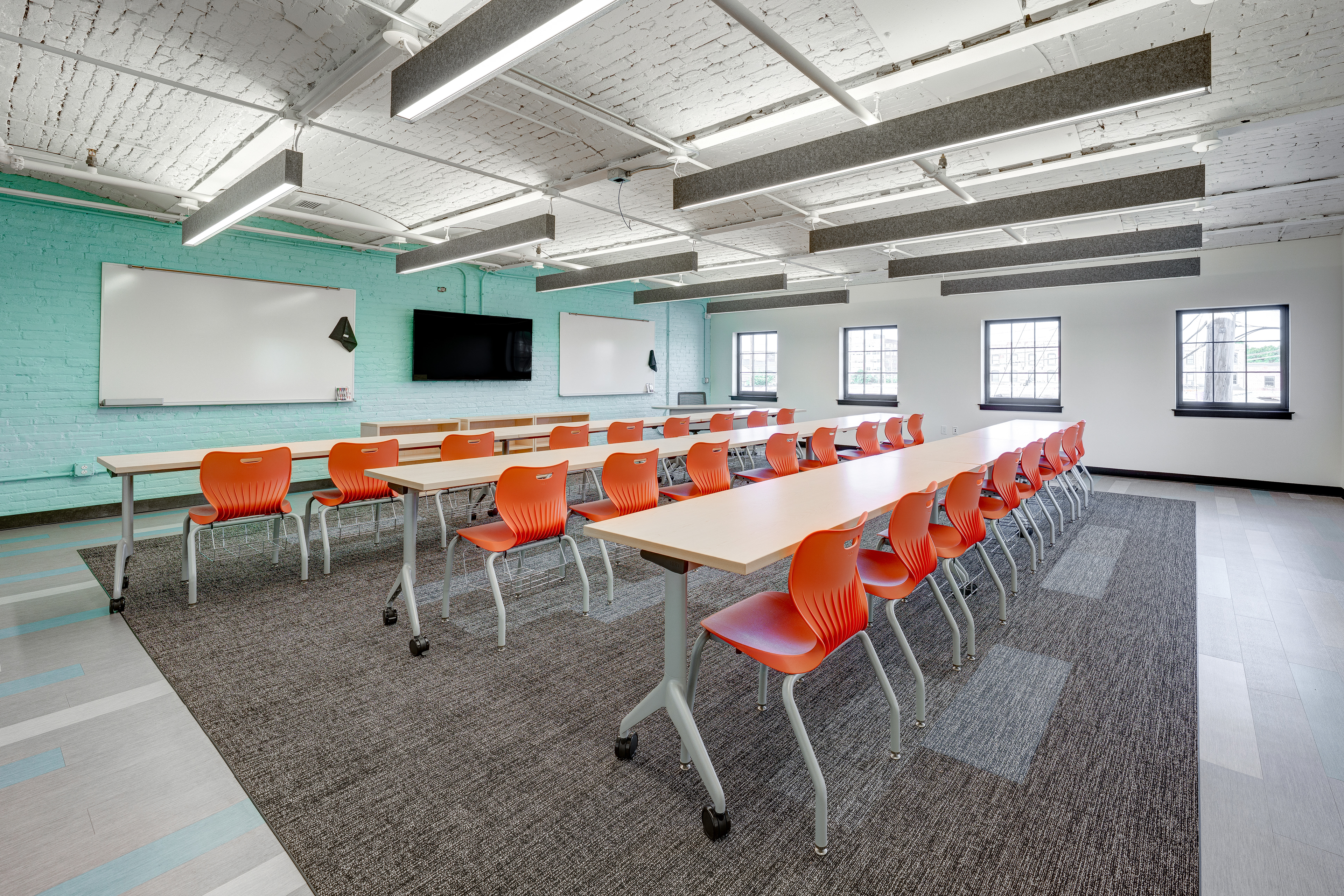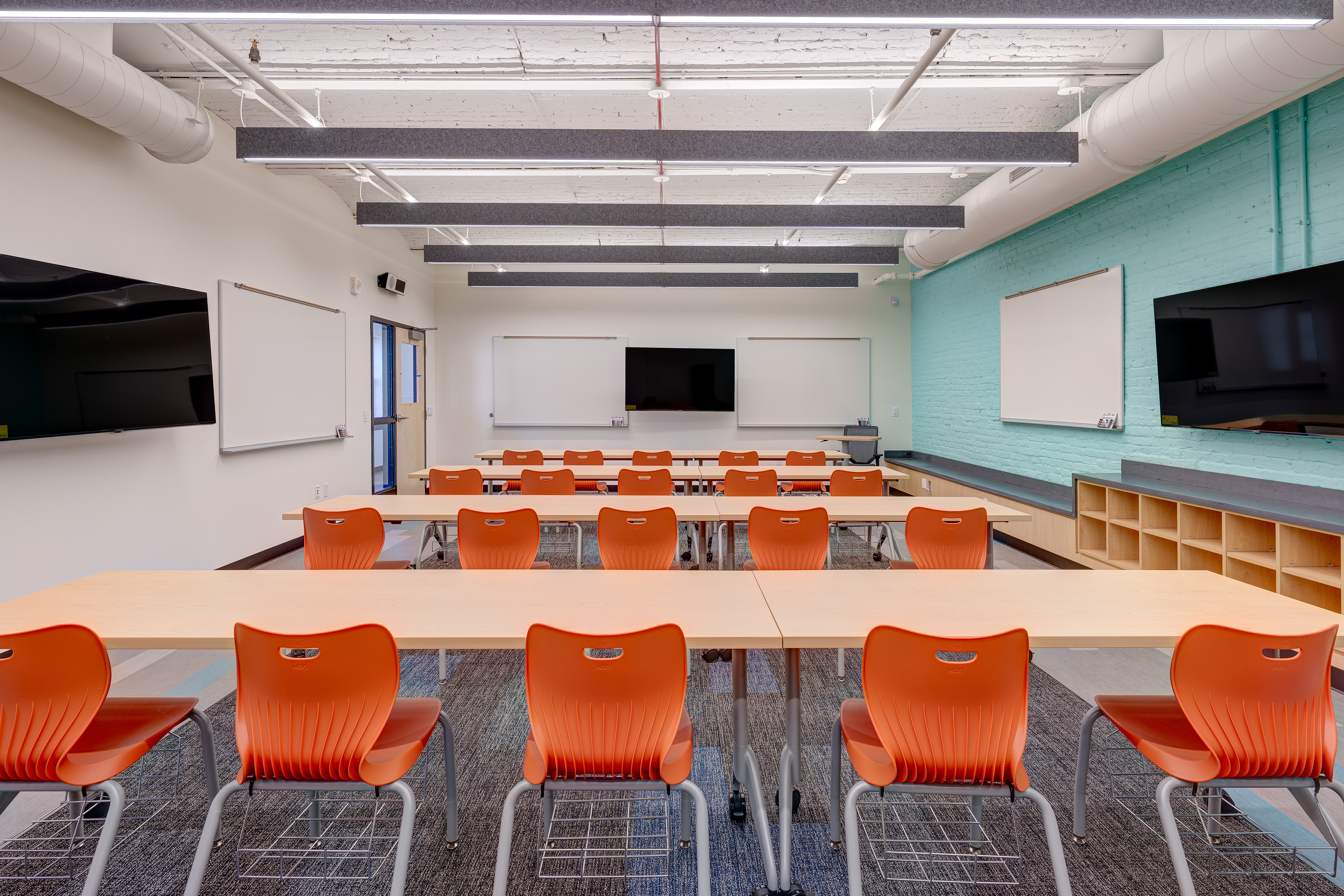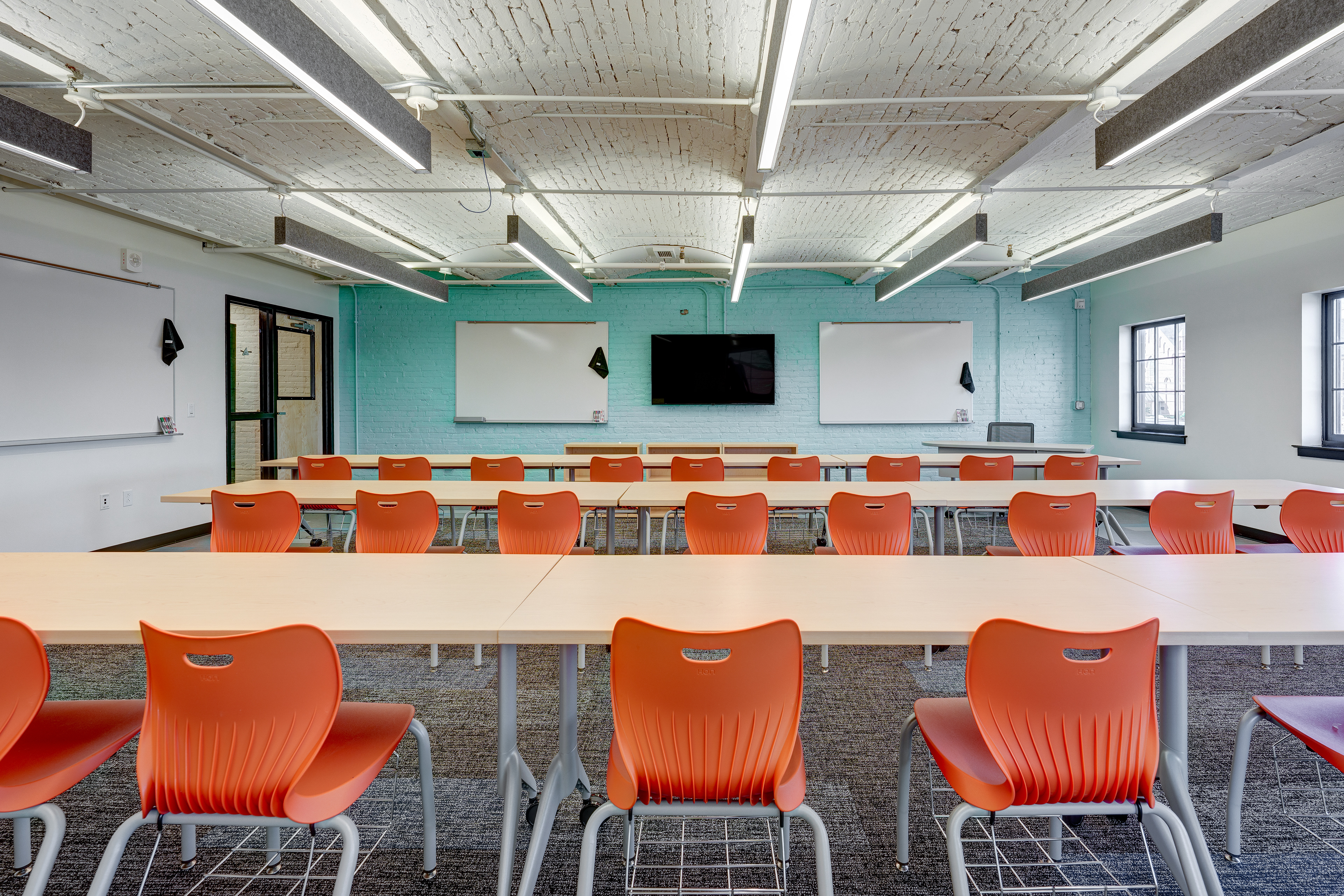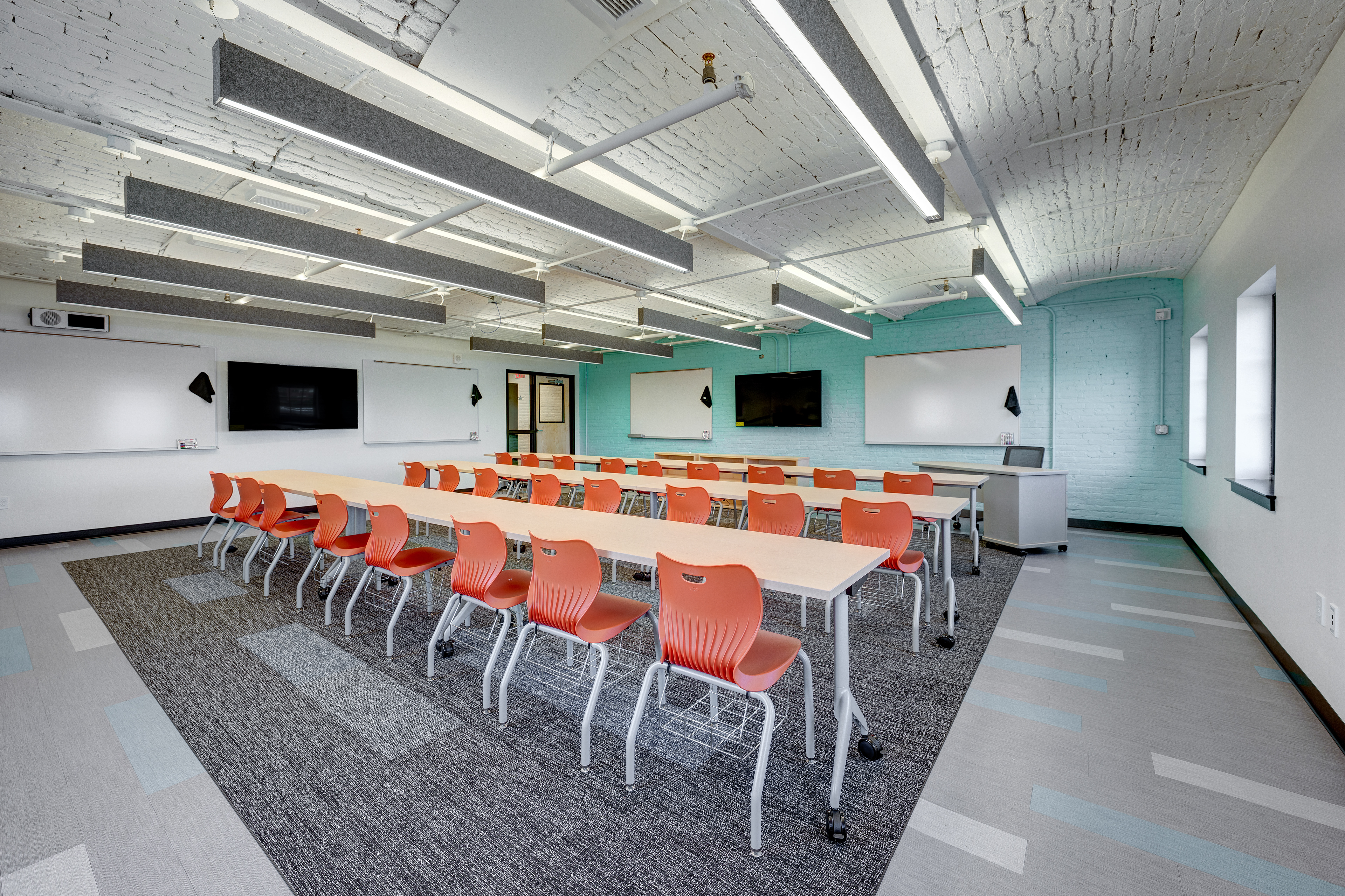 York Academy Regional Charter School (YARCS) was looking to expand its schools by using an empty storage annex building and turning it into classrooms and learning spaces. Due to the age of the building, there were many challenges faced, but also some incredible features, such as barrel vaulted brick ceilings that we kept as part of the design. During planning, the project owners were open to many innovative ideas for utilizing the space available to provide teachers and students with a fun and engaging learning experience. This includes flexible classrooms with movable furniture, custom-designed multi-use casework with bench tops, and a classroom with a folding partition and fun, comfy furniture. I worked closely with teachers and staff to select the best materials possible that fit into their budget while also exceeding expectations. The exposed structural and architectural features of the building provide a hands-on learning experience for their students interested in architecture, structure, engineering, and design.
