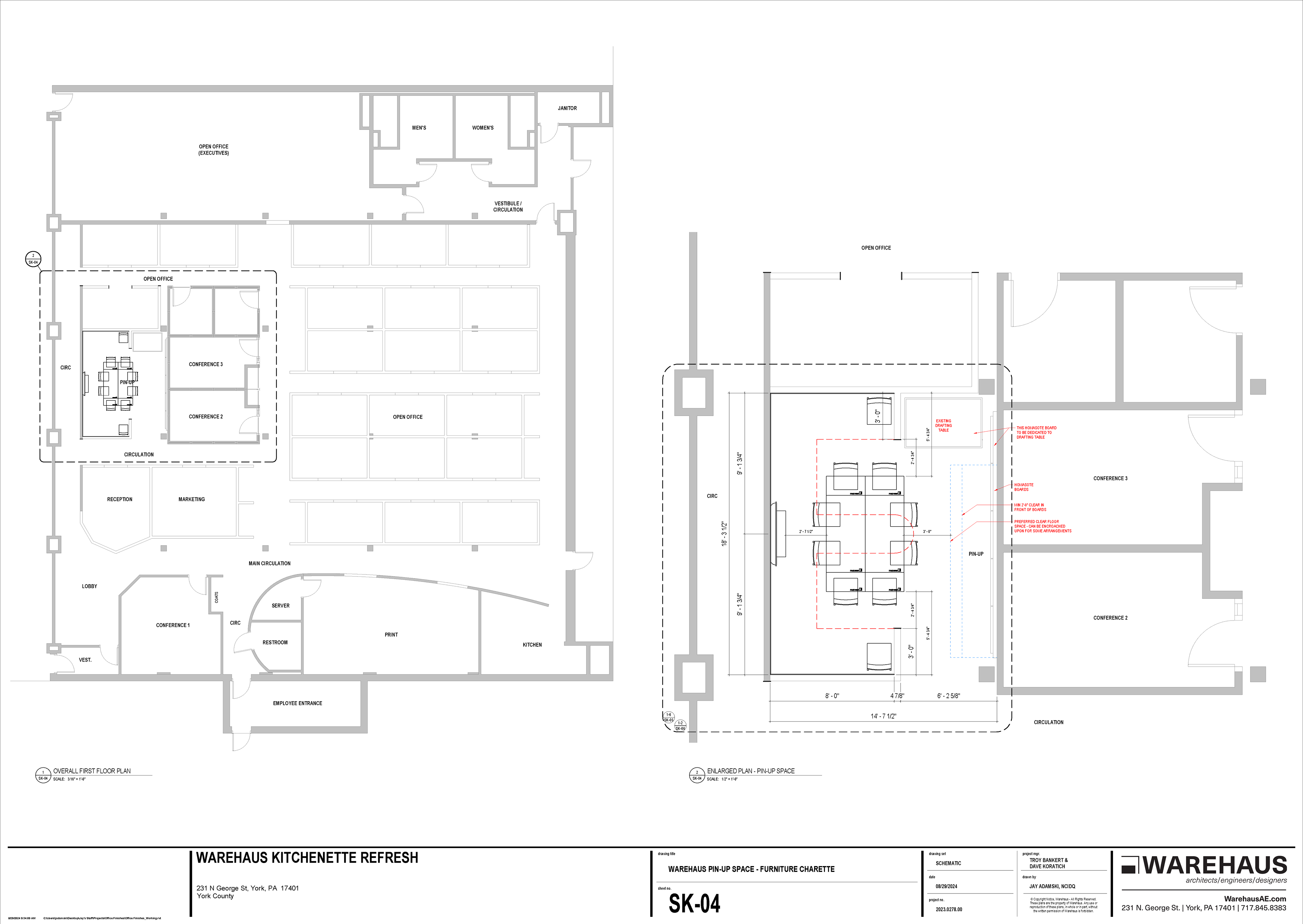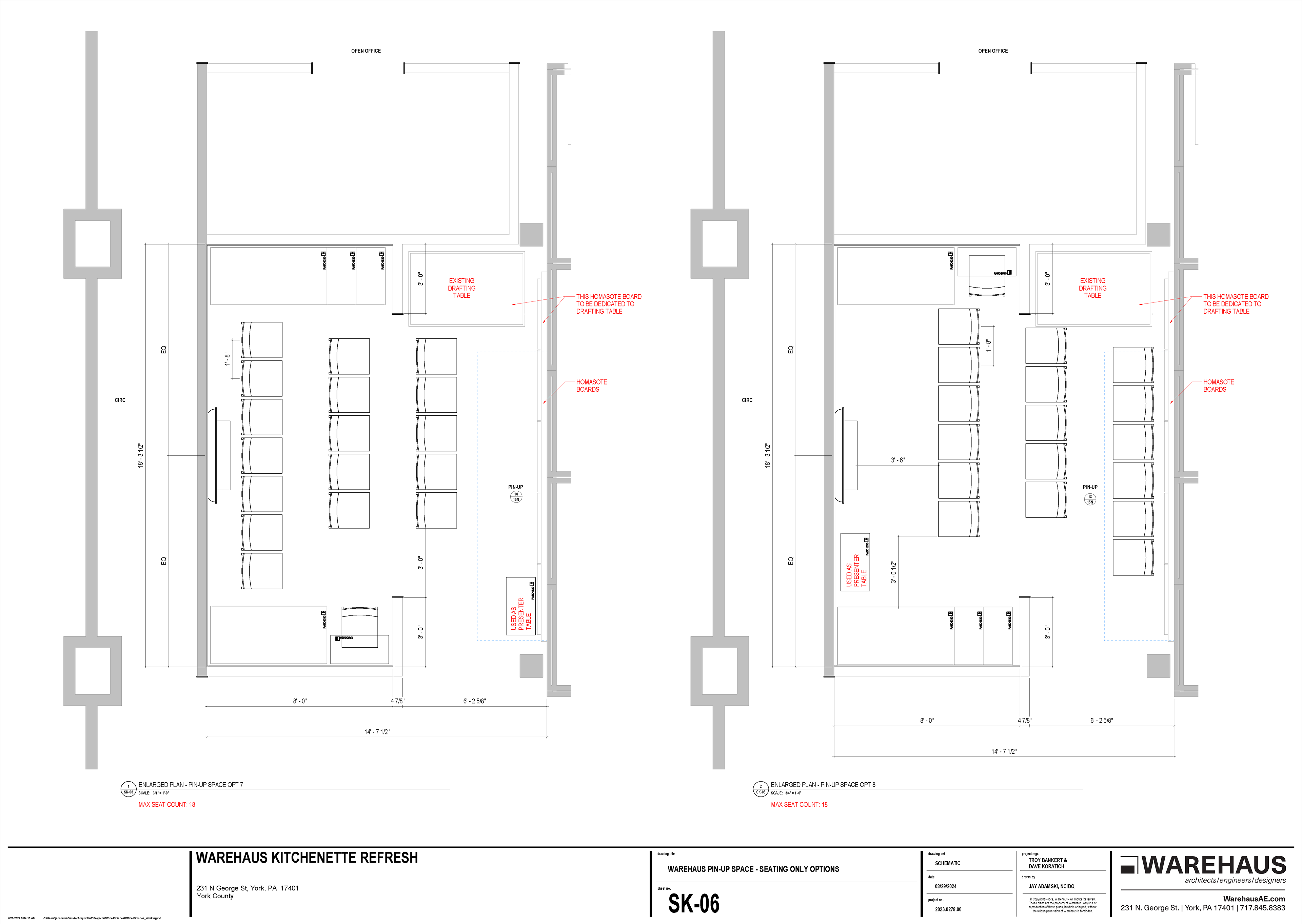 When the owners of Warehaus purchased their building, they wanted to make some modifications that would help increase the functionality of their space. All of our projects require collaboration, and the Pin-Up space is like a haven for colleagues to come and receive help with brainstorming. Due to the age, the space was outdated, lined with too many countertops and a peninsula that blocked the space from being used in a versatile way.