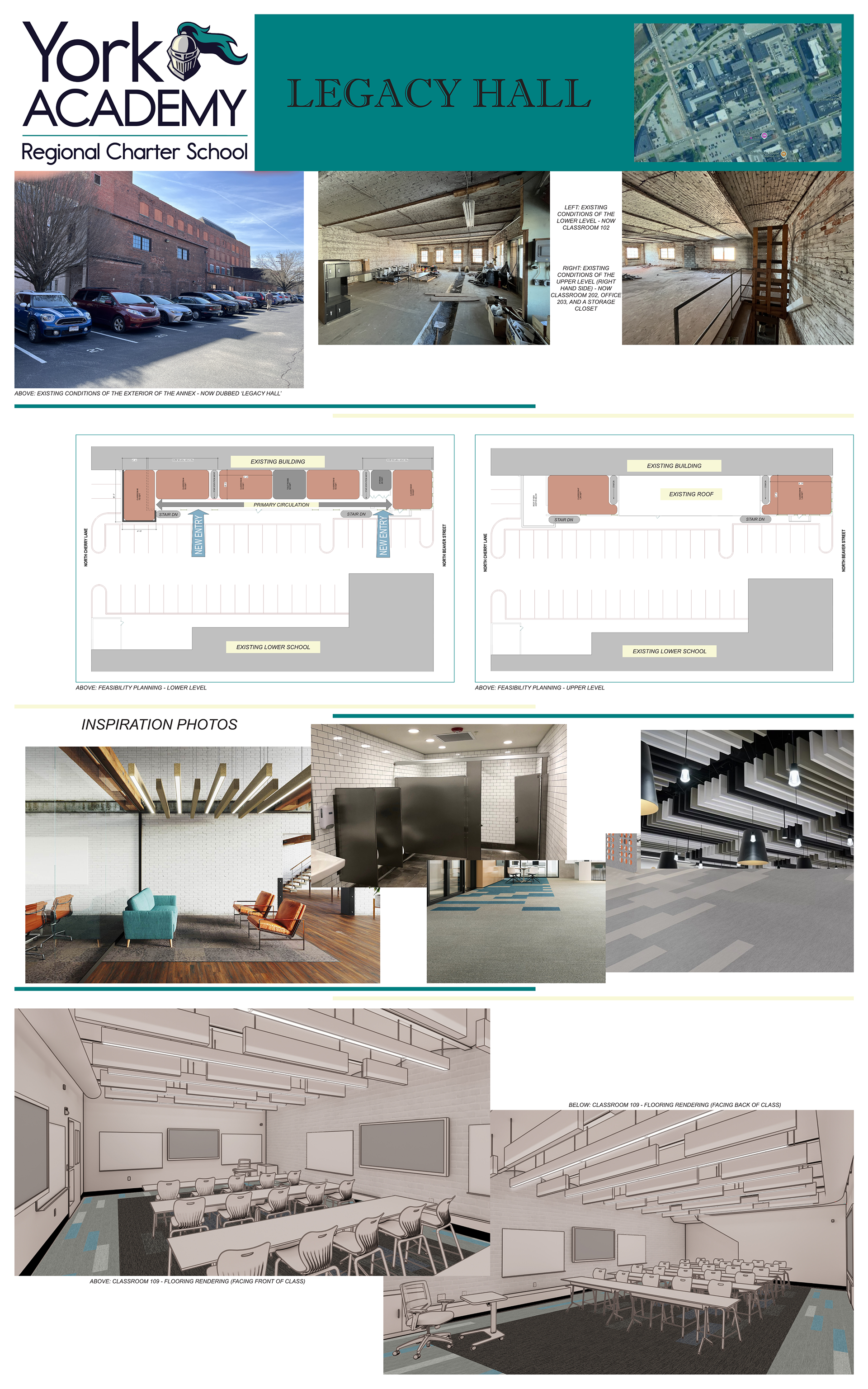 The students of York Academy (YARCS) became heavily involved in the project for their school when it came time to name the building. At first, it was just rumored as "The Annex" which was not a very exciting or memorable name. Eager to take part in the legacy of this new building, the students narrowed it down and took a vote, and Legacy Hall was born. Students became so interested in the project that my colleague and I were asked to put together a presentation for them, helping them understand the process of our projects.