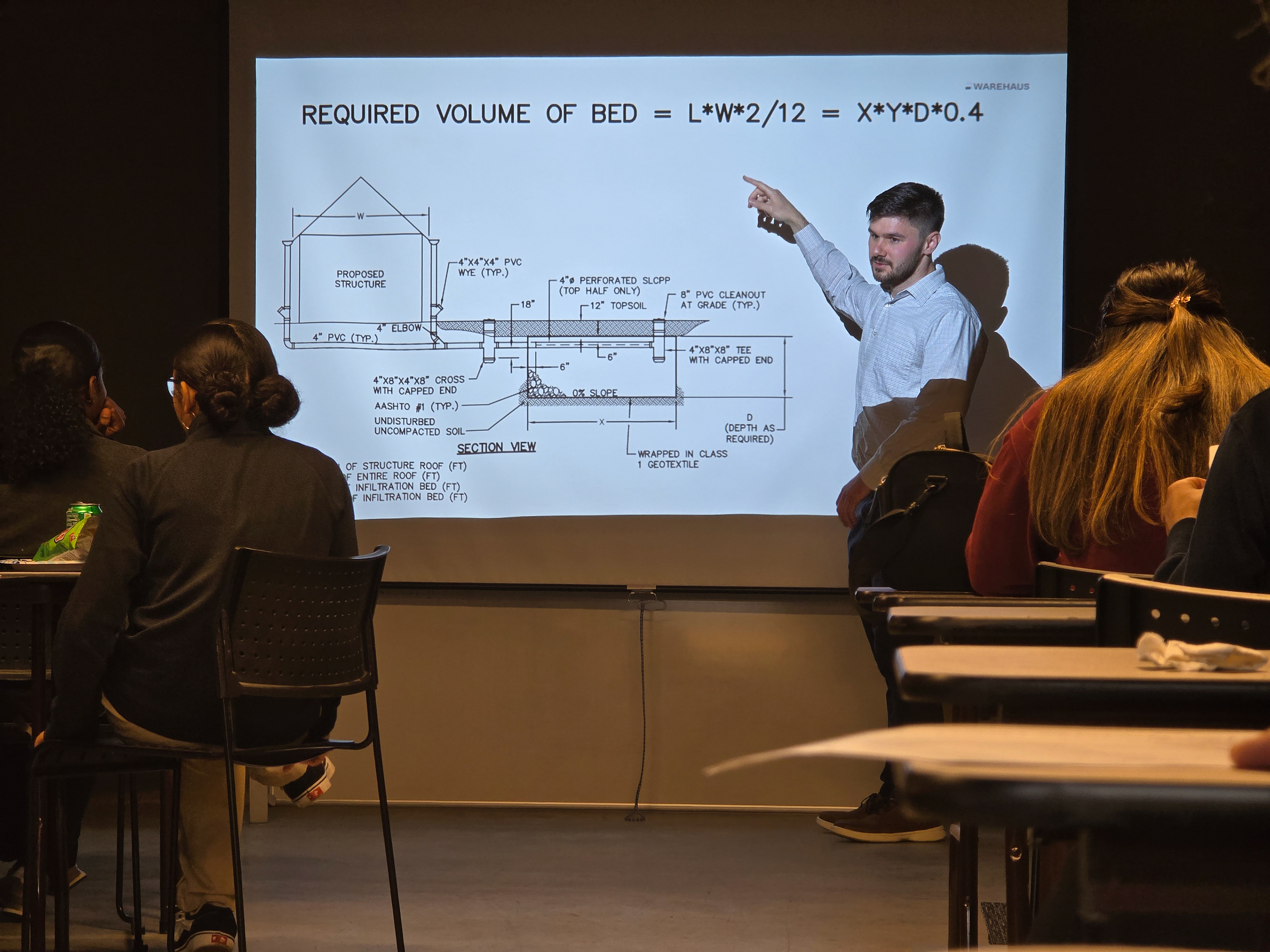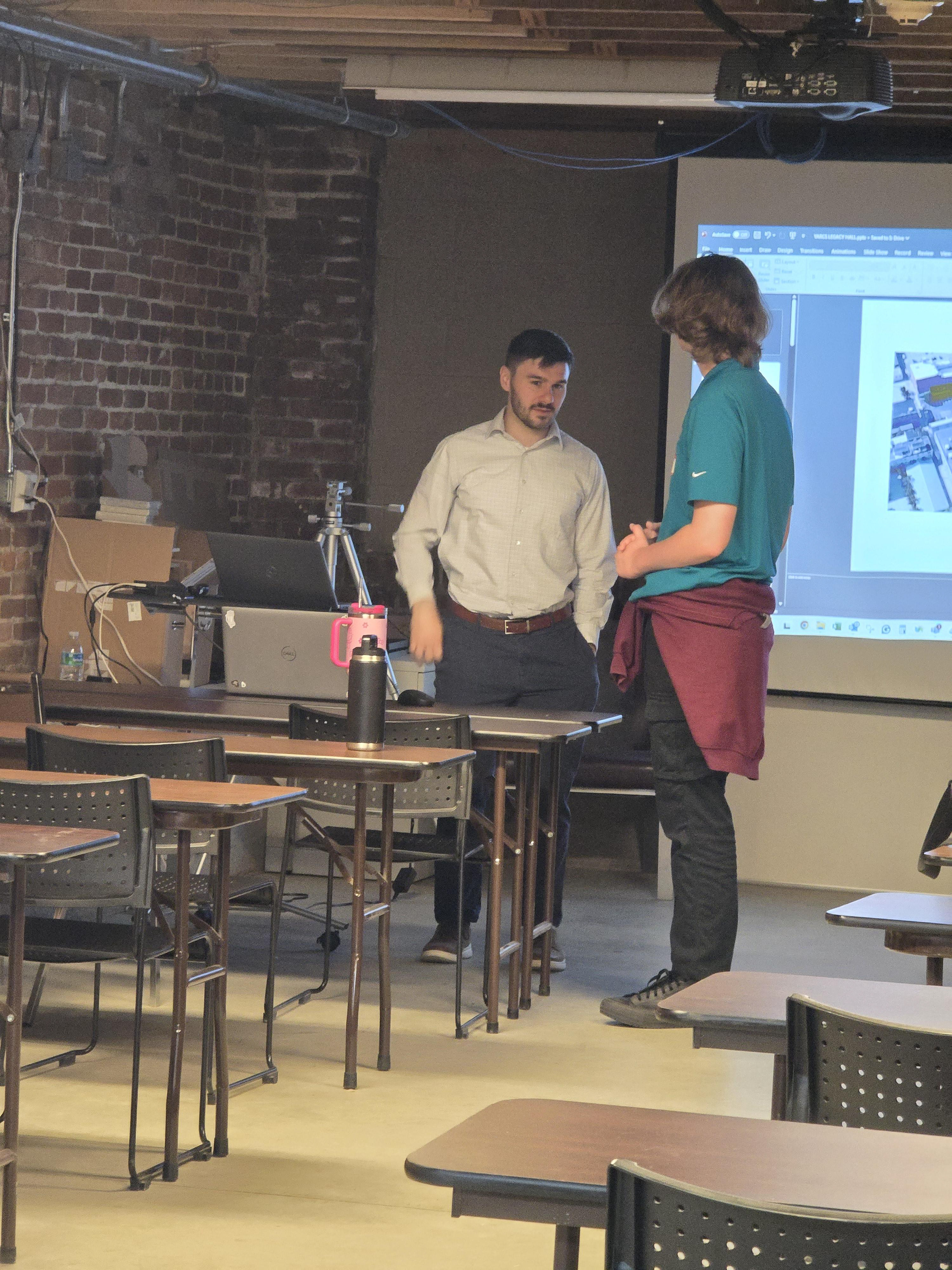 The students who attended all had an interest in Architecture, Design, Engineering, Structure, or related fields. My colleague and I gave a presentation that was engaging and interactive, and left the students excited to learn more. They got to participate by making educated guesses about factors that drive site design, answering a mini-quiz, and physically interacting with sample boards and 3D models. Each student got to take home a small sample of the countertop used in Legacy Hall, helping them to feel even more connected and important to their school's project.