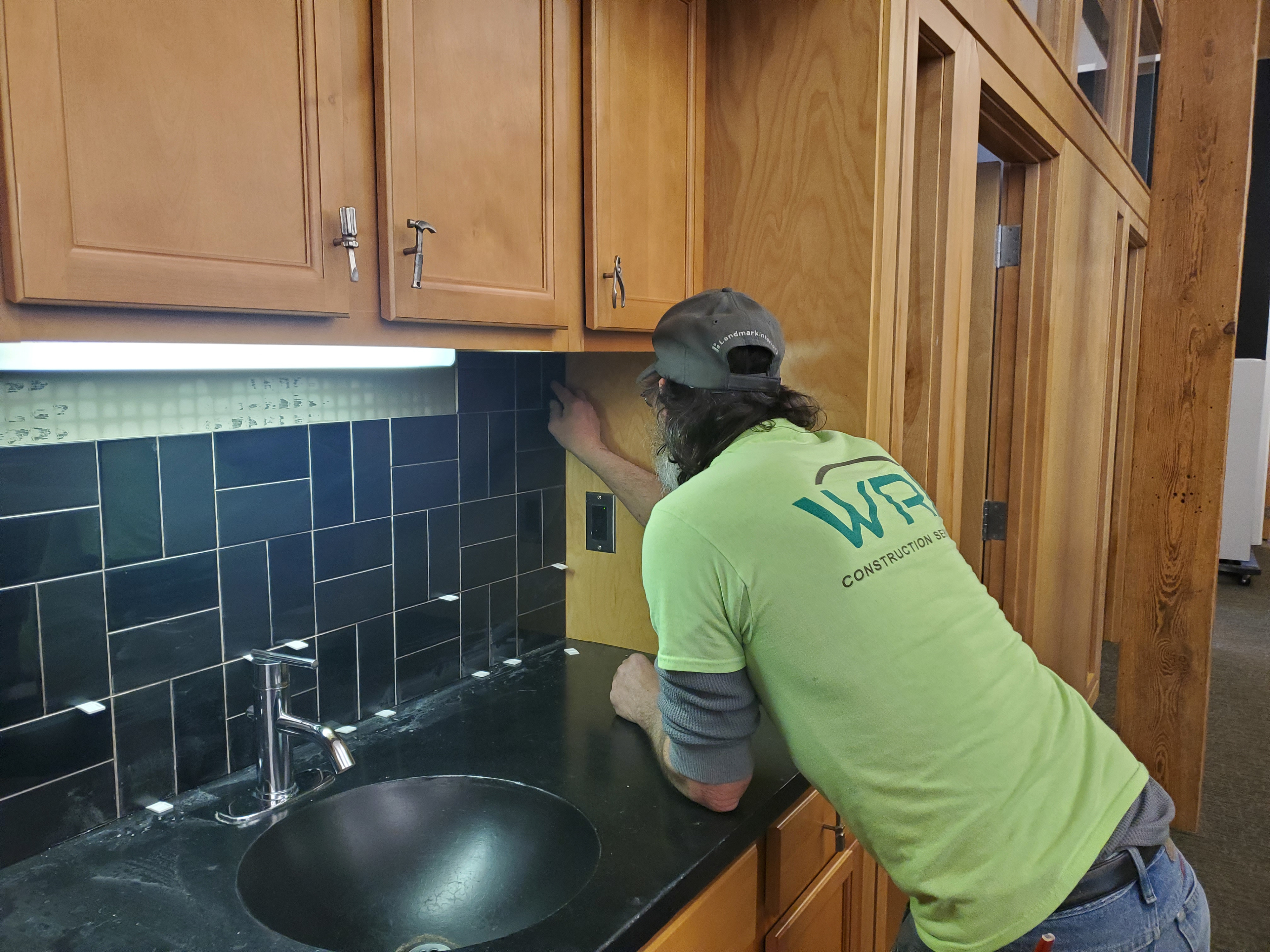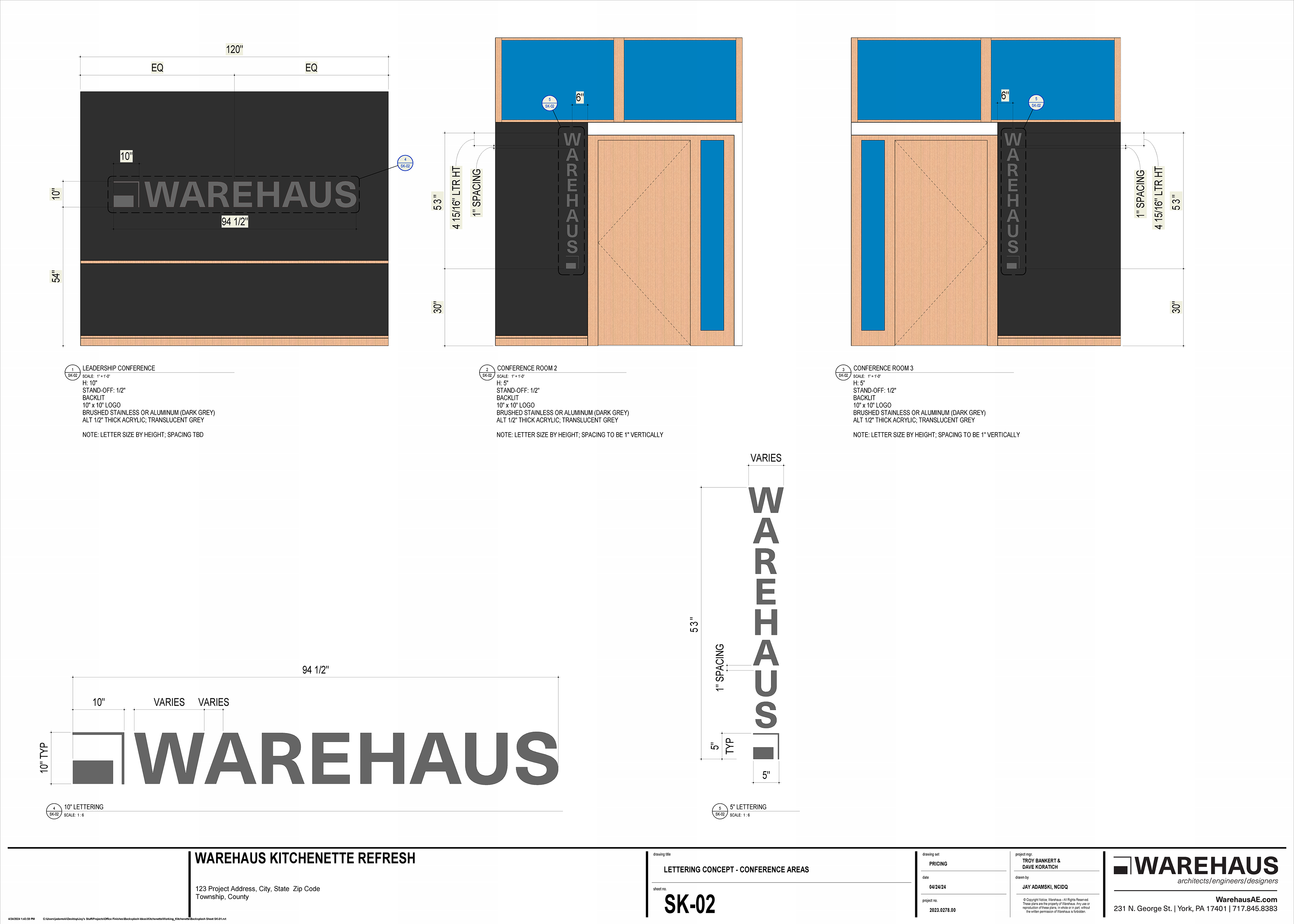 The kitchen and kitchenette at Warehaus needed some major sprucing up. The casework, countertop, and backsplash were outdated, and the colors didn't blend with Warehaus' brand. I met with the owners to determine what their ideas and visions were for the cabinetry and backsplashes. While they knew they wanted a bold, elegant look that reflected their brand in a sleek way, they hadn't settled on a final design quite yet.