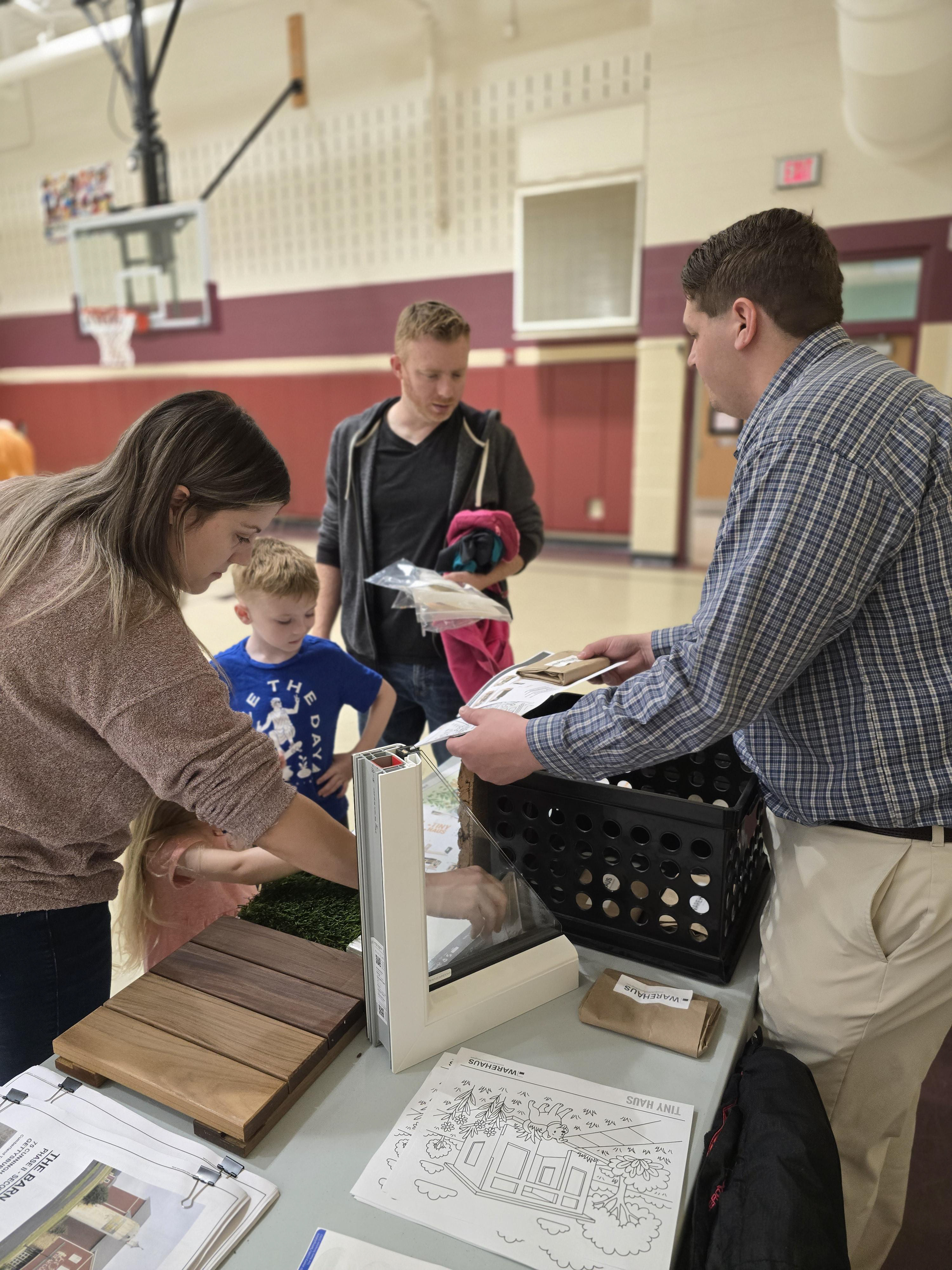 At Warehaus, community engagement is important, and I was eager to participate at any chance I got! For an event at Hayshire Elementary school, my colleague and I volunteered to put together a fun learning experience for a Career experience event at the school. Inspired and motivated, Cody and I quickly came up with a fun way to engage young elementary students in Architecture in a way they could understand. We created a fun build-your-own house activity, where students and their families collaborated to put together a house (made out of bass wood) and decorate it. Armed with student helpers, we had an absolute blast, and so did the students! The students' houses looked really awesome at the end!