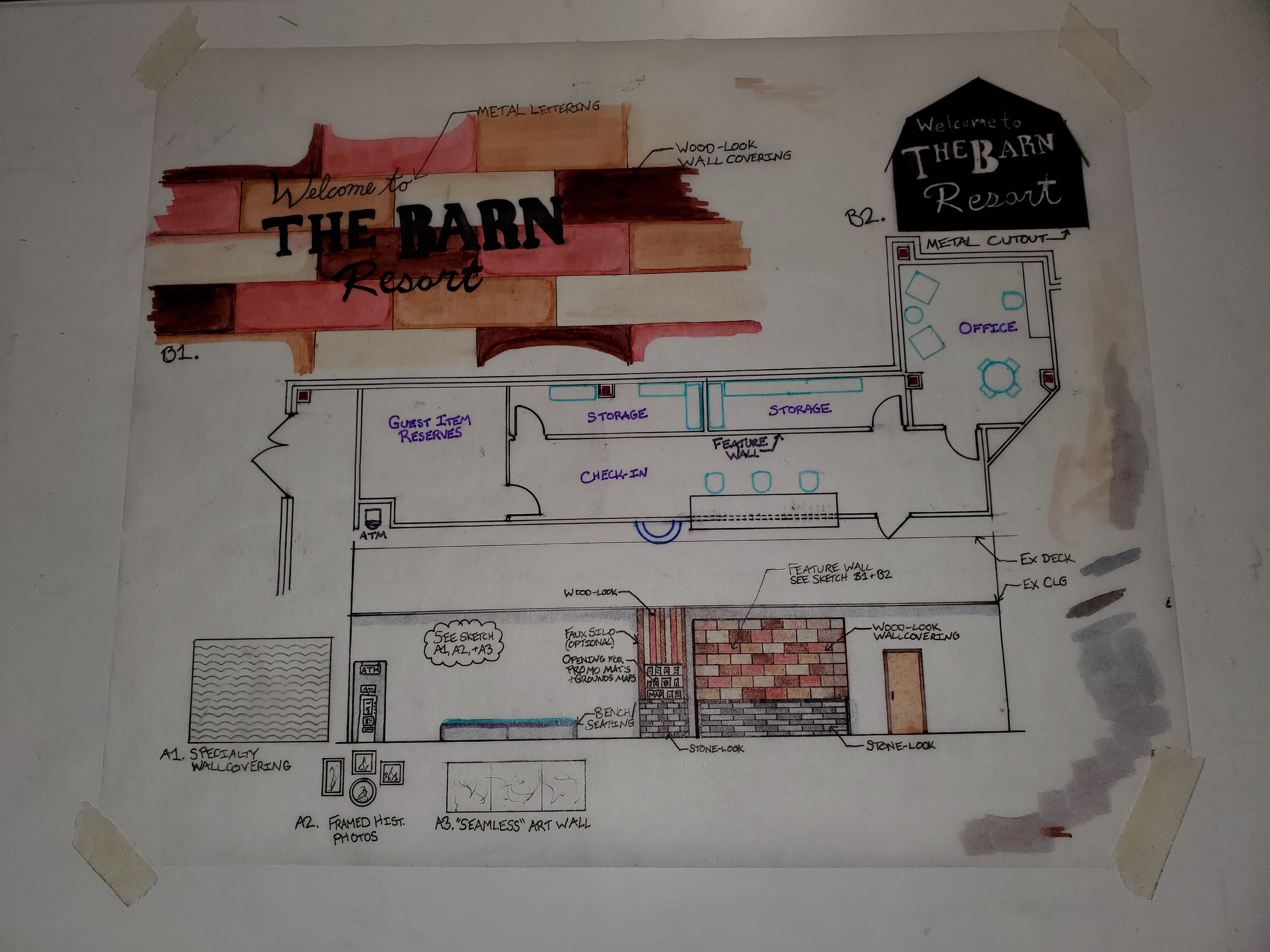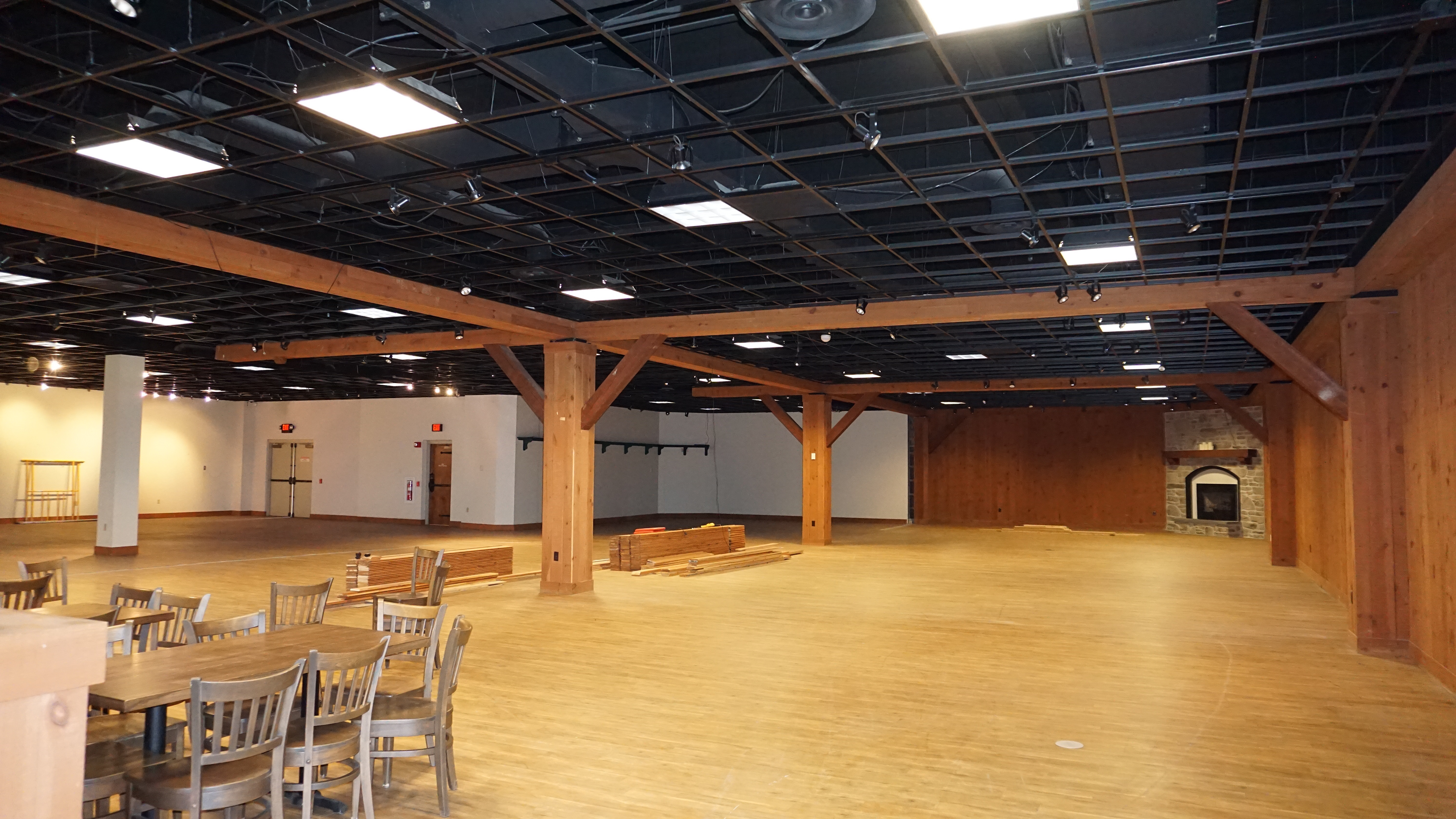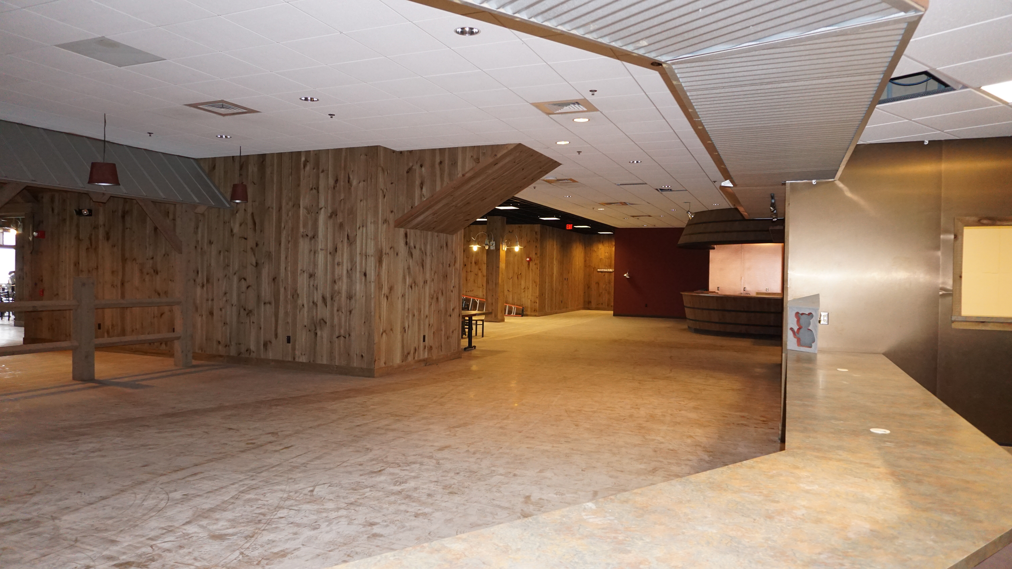 Utilizing the existing elements of the space, we carefully planned out the event space, retail area, large but inviting lobby and lounge area, arcade, bar, and buffet. In order to capture some of the original features of the space, we utilized the existing silo structure as the holding tank for the fire suppression system. We also kept many of the original architectural features, especially the beautiful stone fireplaces, and architectural wood structure in the lobby. The ongoing transformation of this building and site includes planning for a hotel and a campground.